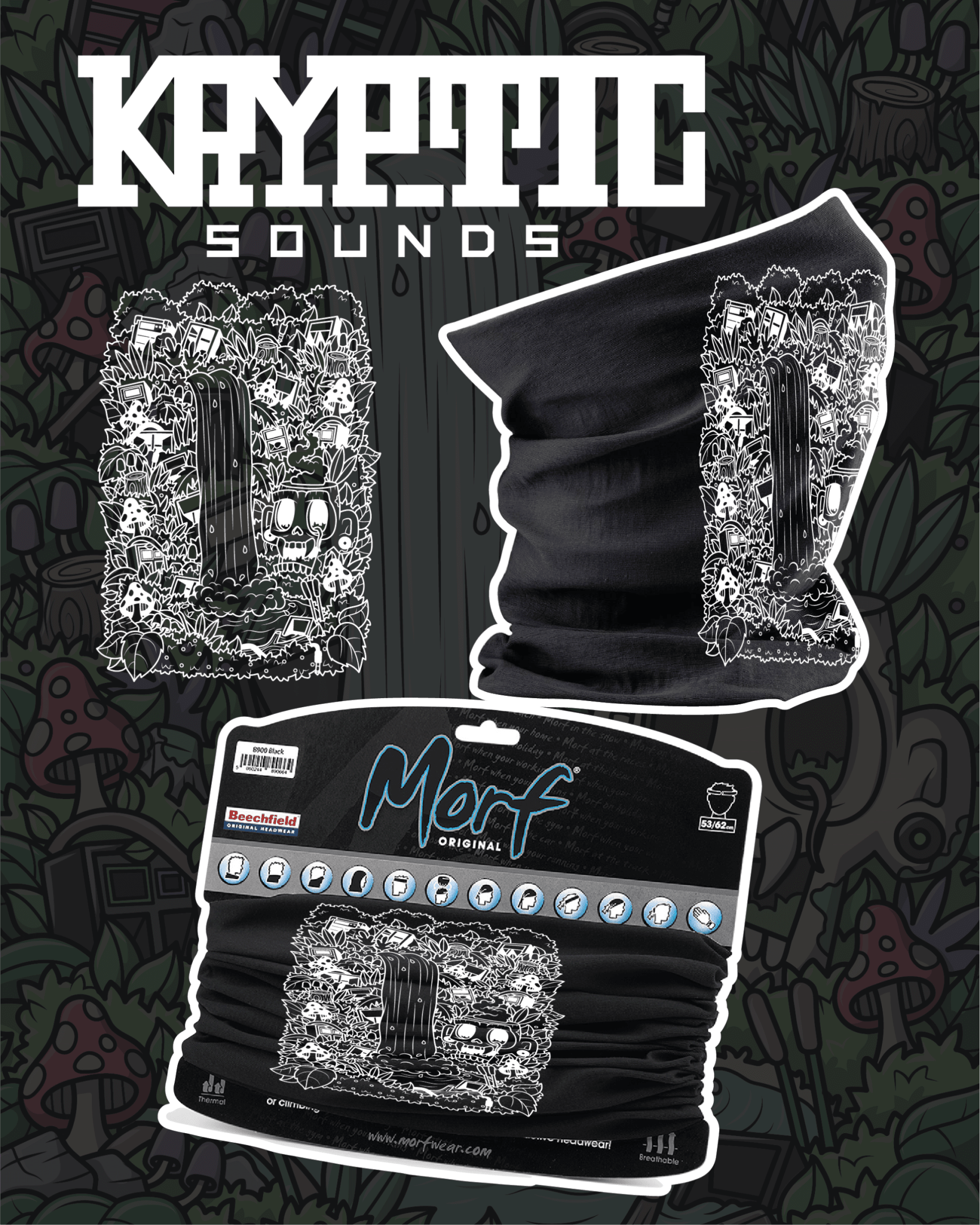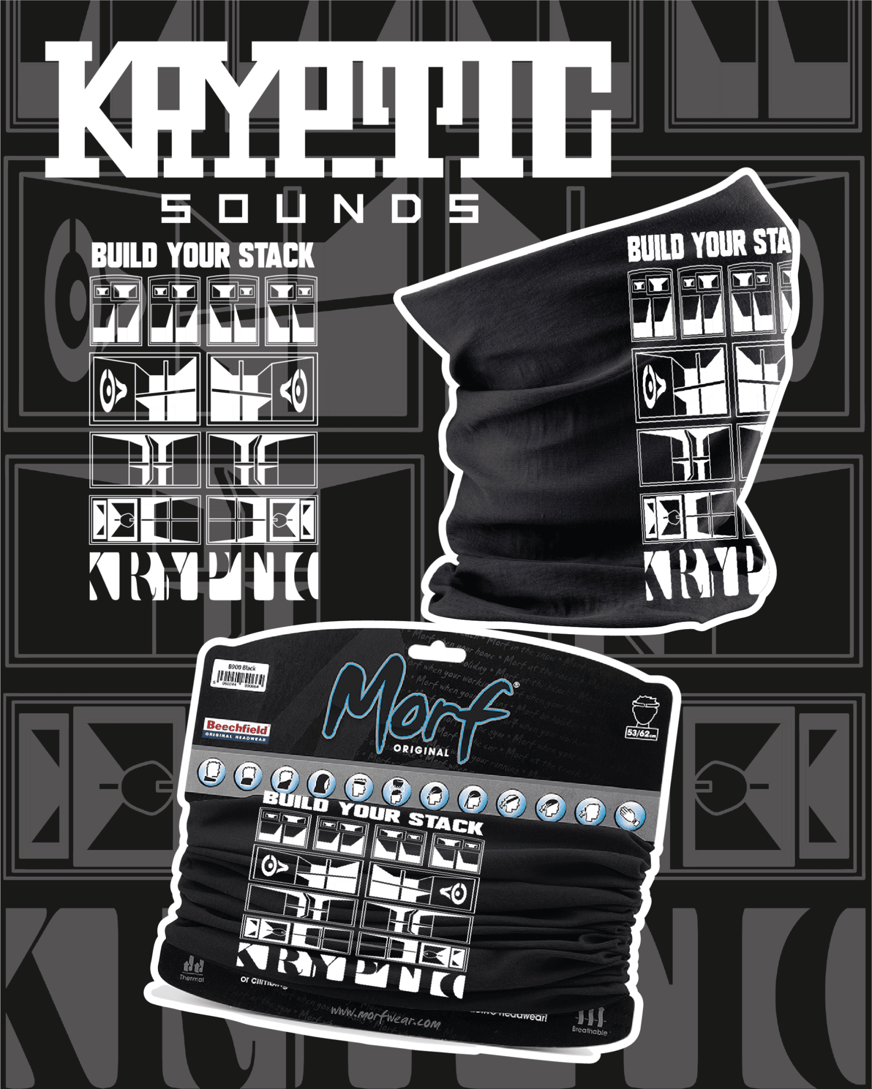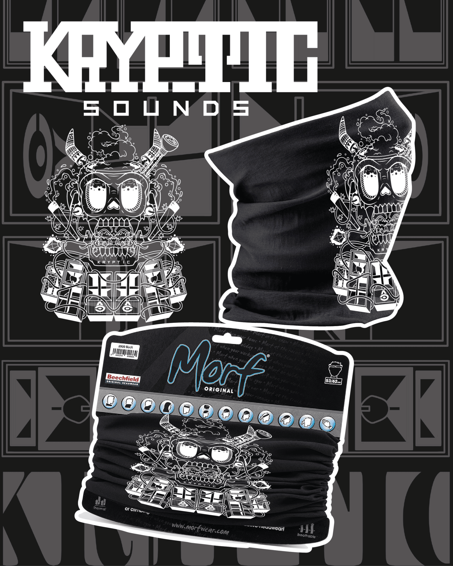 Unleash your rave identity with the Kryptic Sounds Snood – This versatile snood offers seamless comfort, thermal warmth, and multi-functional wearability — from face cover to headband, neck warmer to beanie. Whether you’re deep in the dance or heading out into the elements, this is the perfect blend of style, utility, and rave-ready art.